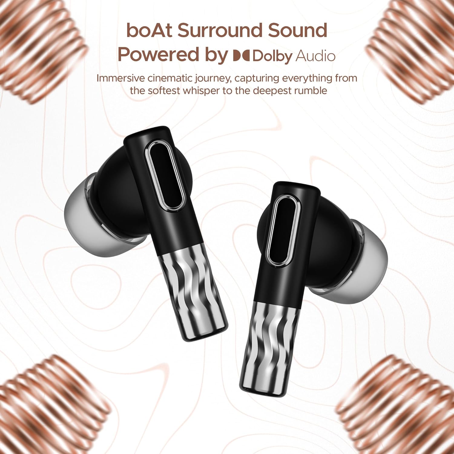 | Special Feature | Superior AI-ENx™ Technology, Up to 50 dB Active Noise Cancellation, boAt Surround Sound powered by Dolby Audio, Premium Design, Bluetooth v5.3 |