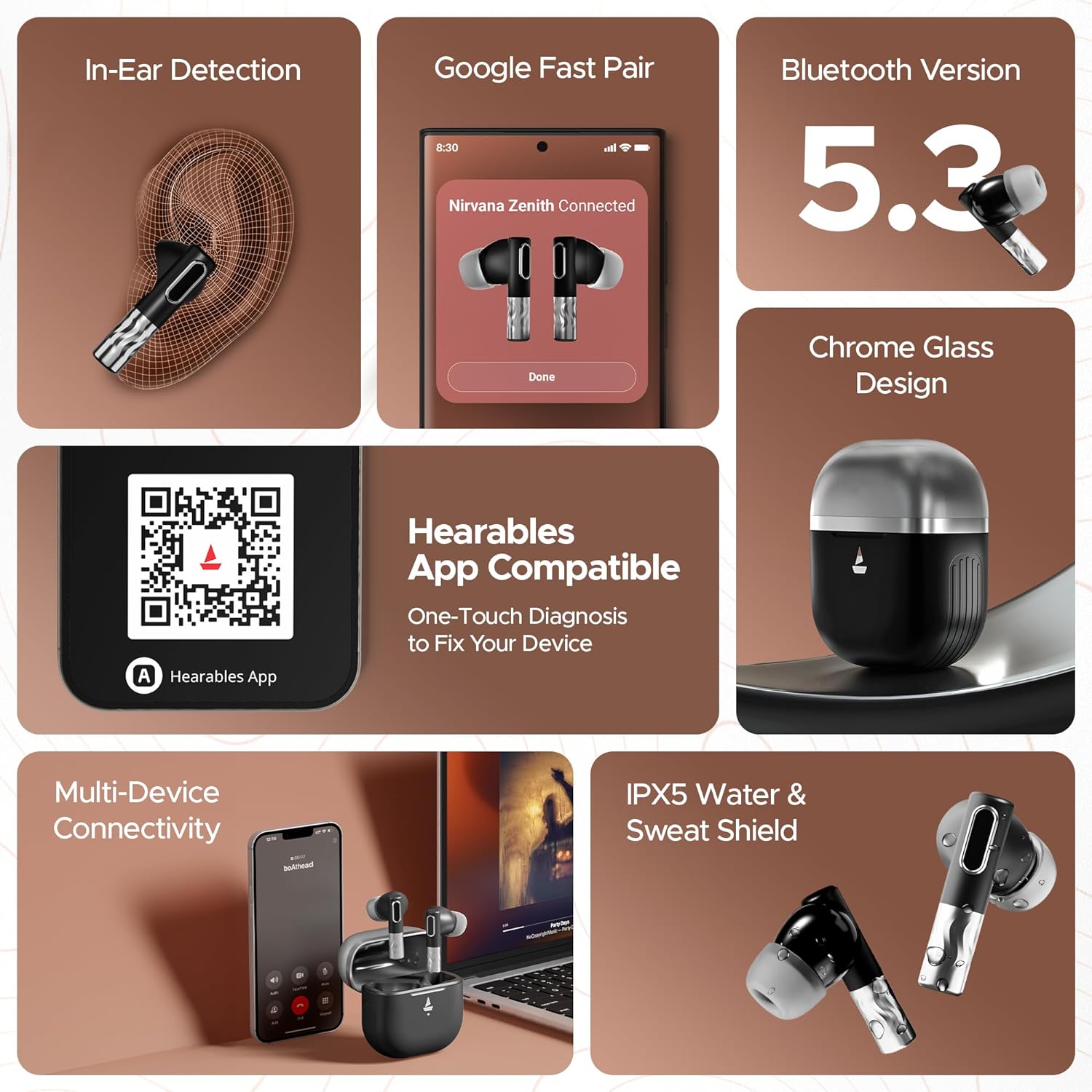 | Special Features | Superior AI-ENx™ Technology, Up to 50 dB Active Noise Cancellation, boAt Surround Sound powered by Dolby Audio, Premium Design, Bluetooth v5.3 |