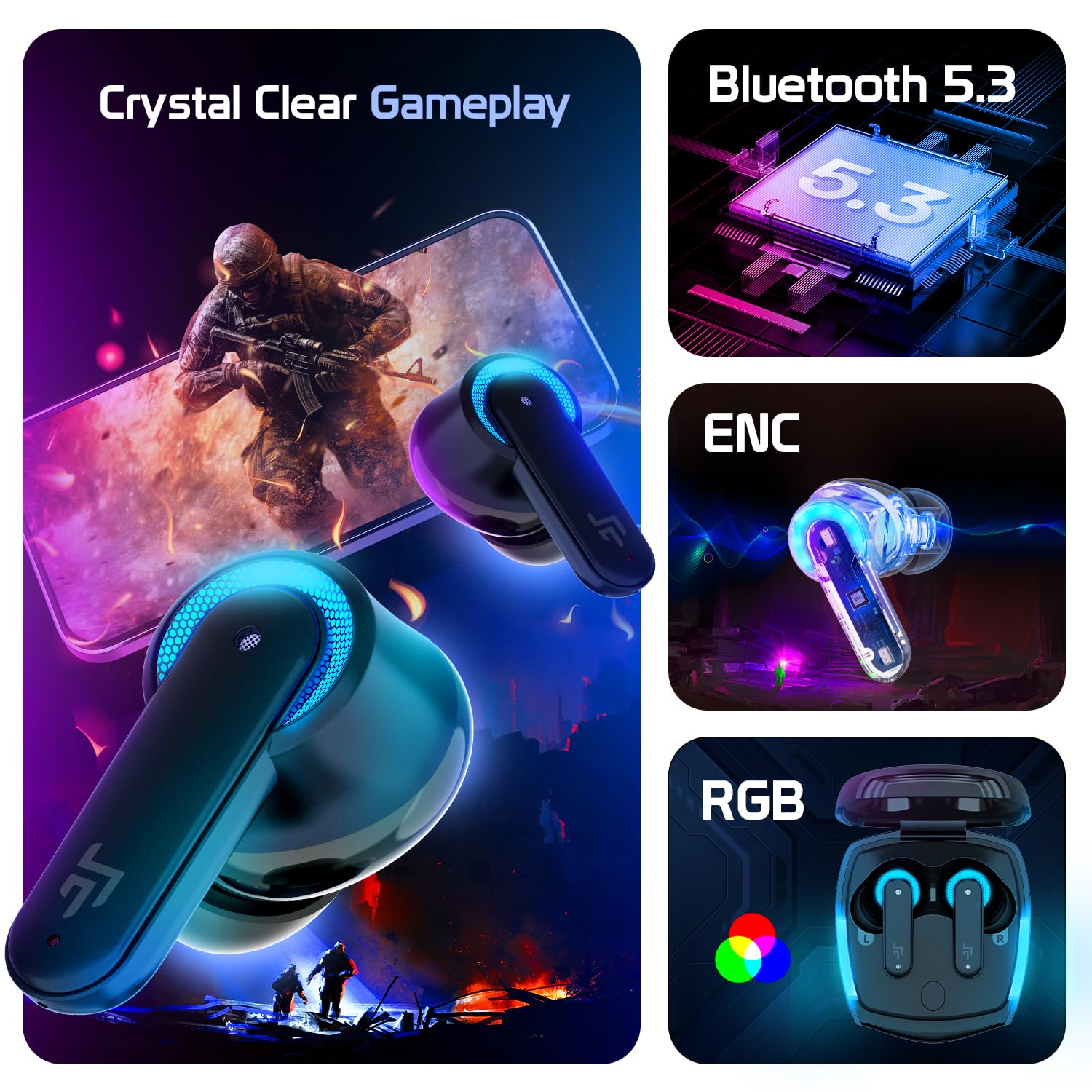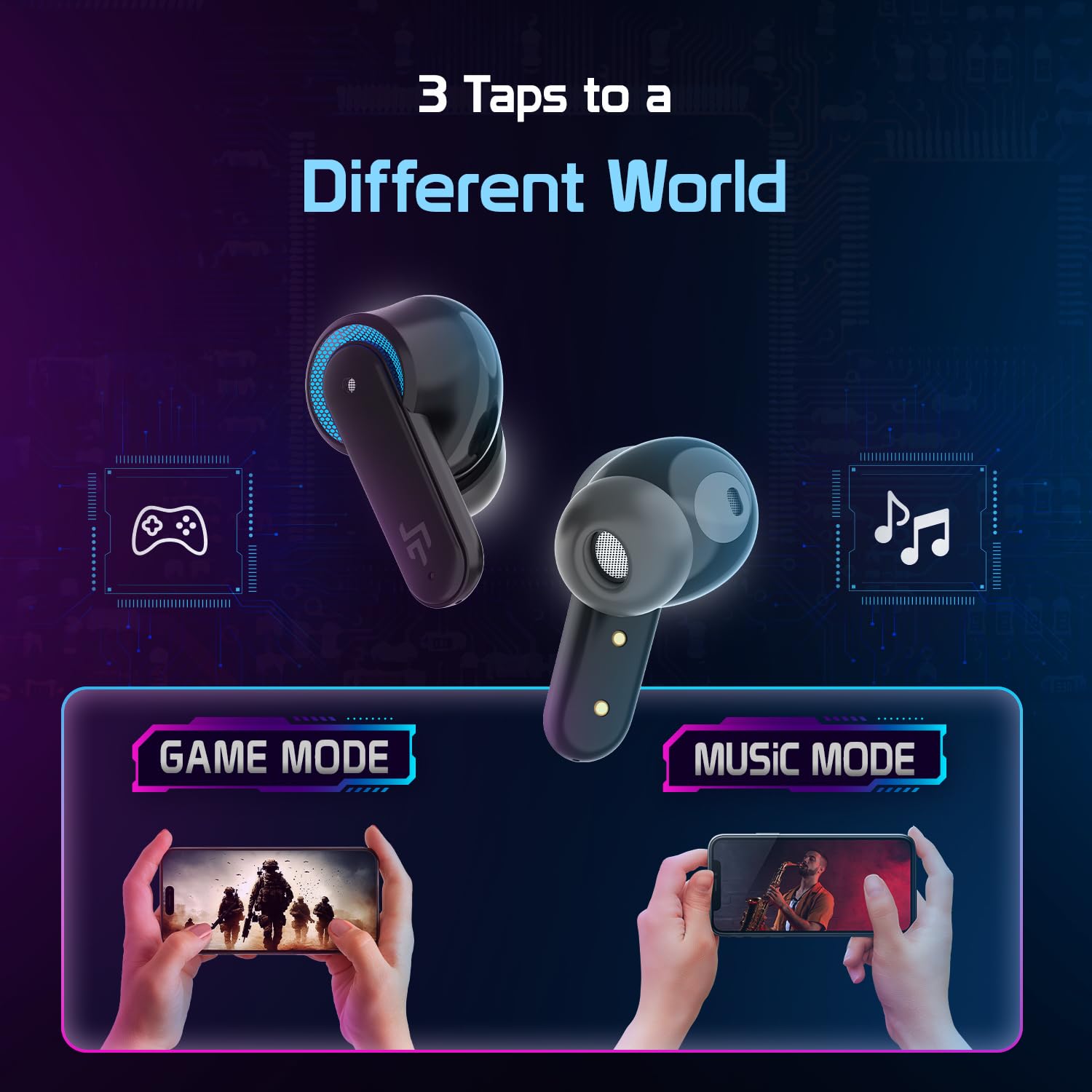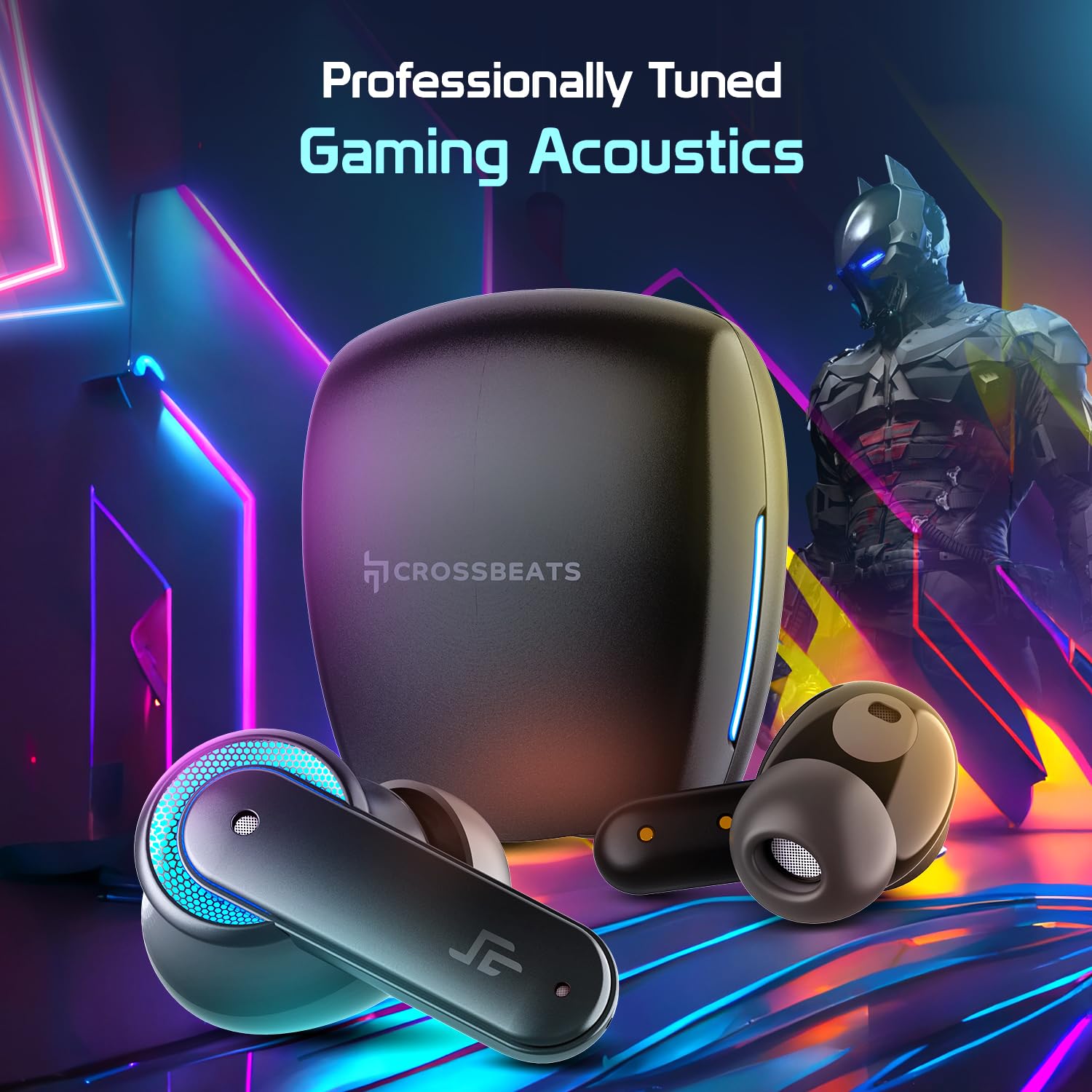 CrossBeats Fury Latest True Wireless Gaming Earbuds, 30ms Ultra Low Latency Noise Cancelling80hr Playtime, Fast charge (Black)