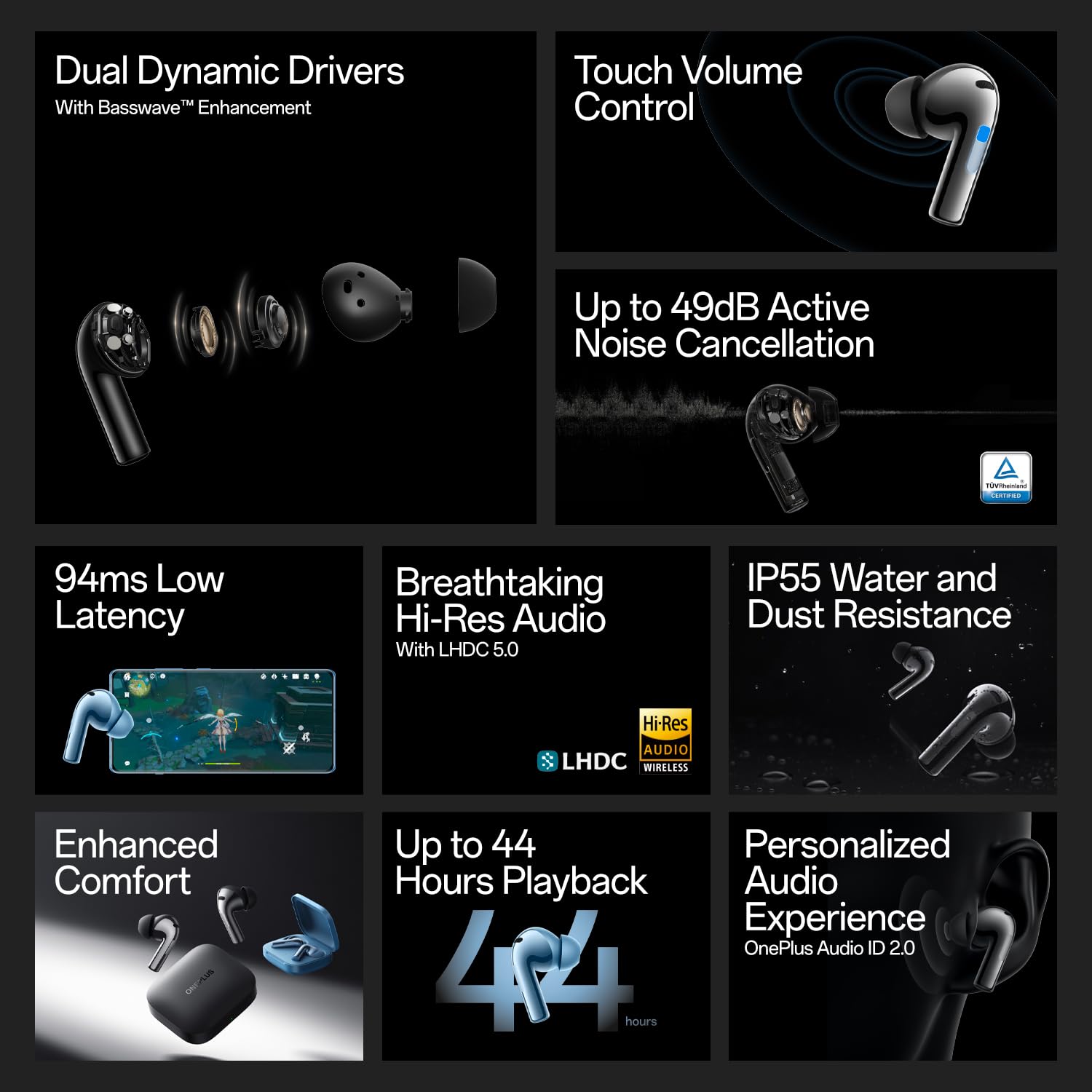 | Special Feature | Buds 3 True Wireless in Ear Earbuds with Sliding Volume Control and 49dB ANC |
